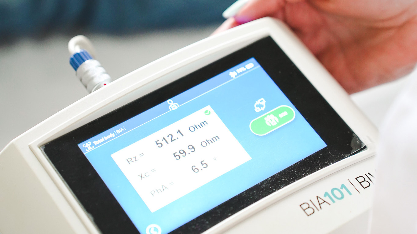 Ci serviremo di macchinari di ultima generazione, come quello per la bioimpedenziometria (BIA), un esame non invasivo e indolore che analizza la composizione corporea stimando la quantità di massa grassa, massa magra e acqua corporea.